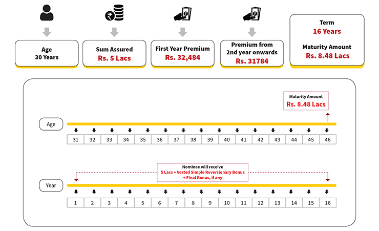 - Settlement option avilable on Maturity and Death in Installments of 5,10 or 15 Years
