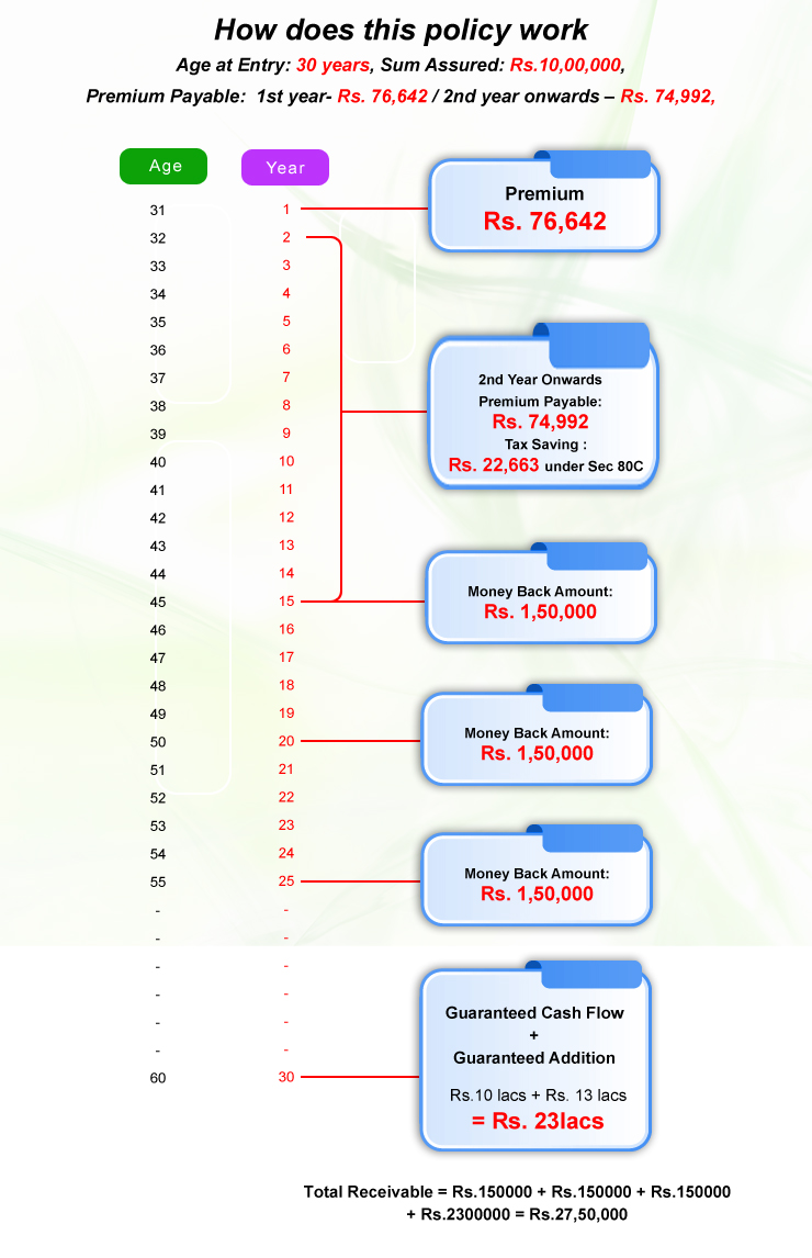 - At the maturity, entire sum assured without any deductions shall be paid to policyholder