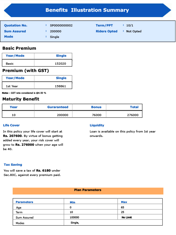LIC Single Premium Endowment Policy Features